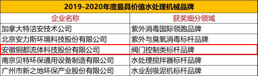 2019-2020年度“環(huán)保裝備品牌評選”結合市場業(yè)績、產(chǎn)品質量、品牌知名度、商業(yè)模式創(chuàng)新四大維度進行綜合評定,終甄選出“2019-2020年度價值環(huán)保裝備品牌”上榜企業(yè)。銅都流體獲此殊榮。
