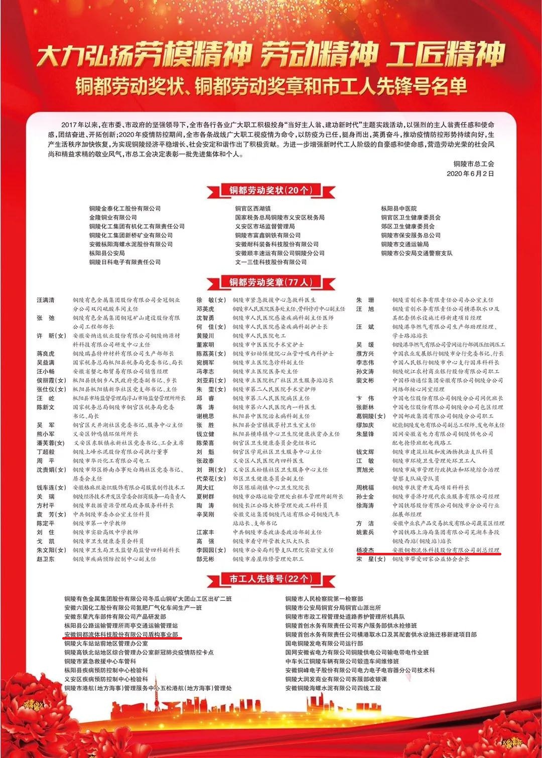 副總經(jīng)理?xiàng)盍杞軜s獲“銅都勞動(dòng)獎(jiǎng)?wù)隆?/b>榮譽(yù)稱(chēng)號(hào)。