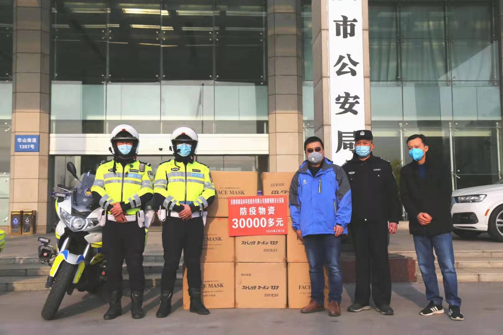 2月3日上午,銅都流體黨總支書記、副總經(jīng)理?xiàng)盍杞苡謳е鴥扇f只口罩,慰問一直奮斗在戰(zhàn)疫情一線的市公安局的干警和參與抗擊疫情一線的工作人員。