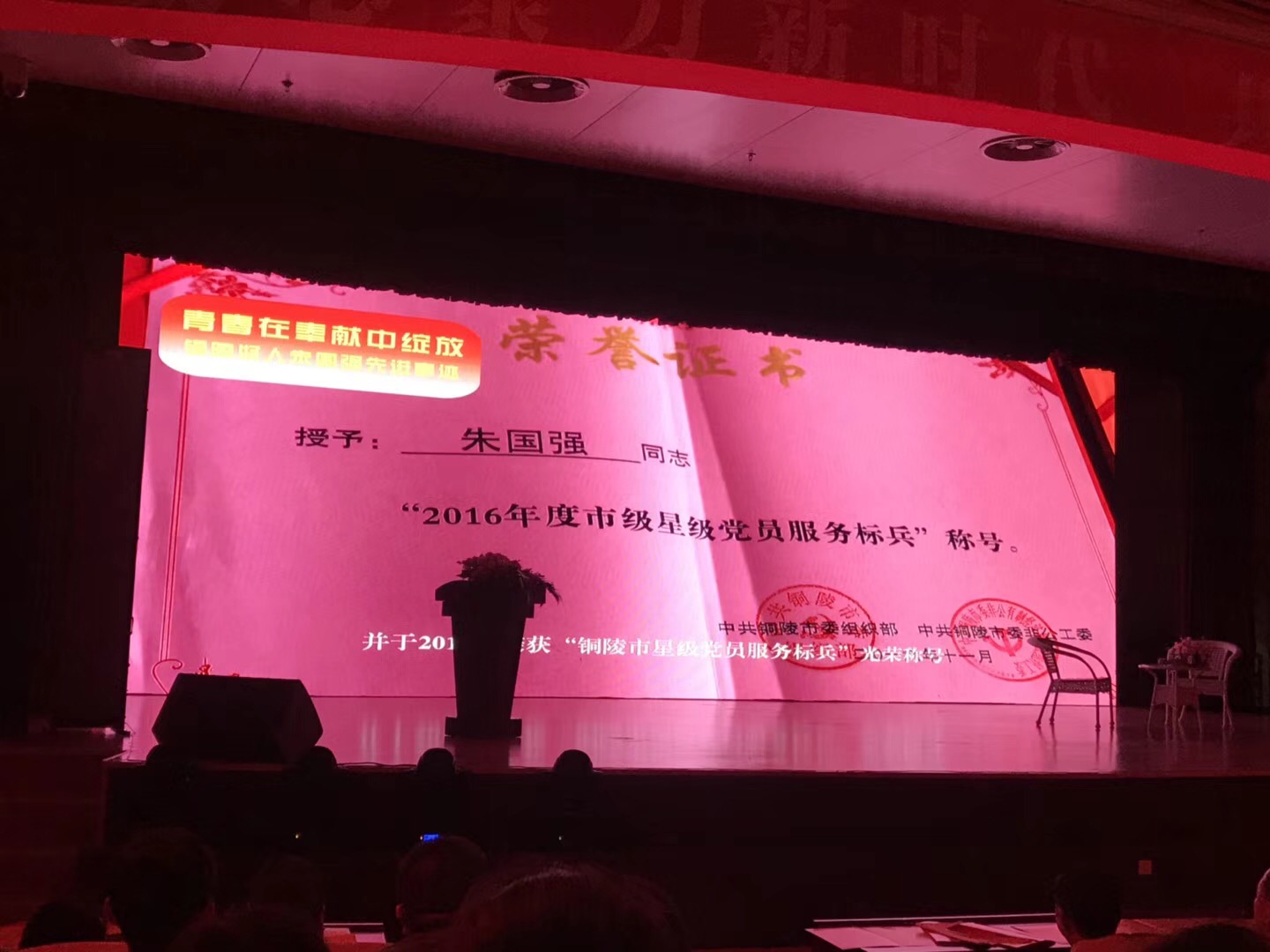 7月30日,銅陵市文明委、文明辦、銅官區(qū)文明辦,在銅官區(qū)會議中心,聯(lián)合召開"銅陵好人"表彰大會,銅都流體員工"銅陵好人"獲得者朱國強同志受到表彰。公司黨總支號召全體員工以朱國強同志為榜樣,獻愛心做好事,無私奉獻,不忘初心,牢記使命,奮發(fā)拼搏,為銅都流體再創(chuàng)輝煌而努力奮斗!