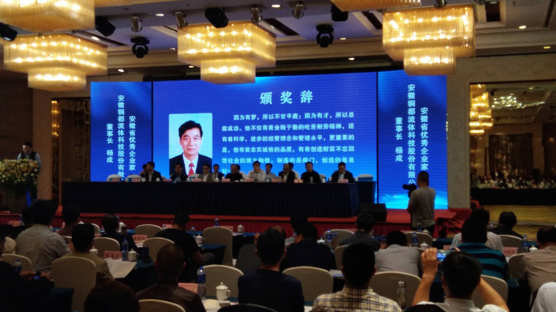 公司董事長楊成作為銅陵市代表,榮獲"安徽省優(yōu)秀企業(yè)家"榮譽(yù)稱號(hào),并出席了安徽省優(yōu)秀企業(yè)家表彰會(huì)暨安徽省企業(yè)誠信建設(shè)大會(huì)頒獎(jiǎng)儀式。