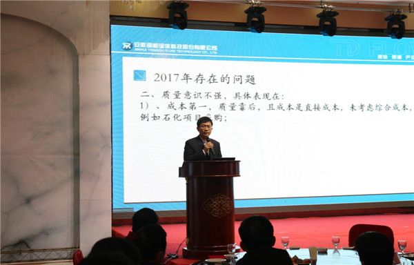 年會(huì)上,公司副總經(jīng)理?xiàng)盍杞茏?017年度營(yíng)銷工作報(bào)告, 公司總經(jīng)理趙小虎對(duì)2017年度工作作了全面總結(jié),充分肯定了公司近三年來(lái)各項(xiàng)核心指標(biāo)均實(shí)現(xiàn)兩位數(shù)增長(zhǎng)的成績(jī),指出了目前管理工作中存在的不足,提出了具體改進(jìn)措施,并明確了2018年核心經(jīng)營(yíng)目標(biāo)。公司董事長(zhǎng)楊成結(jié)合行業(yè)及公司當(dāng)前發(fā)展趨勢(shì),從公司長(zhǎng)遠(yuǎn)發(fā)展、做大做強(qiáng)戰(zhàn)略高度,深刻分析了銅都流體面臨嚴(yán)峻的挑戰(zhàn)形勢(shì),并指明企業(yè)的發(fā)展策略以及發(fā)展措施,并號(hào)召全體員工不忘初心,繼續(xù)發(fā)力,使銅都流體新年再上新臺(tái)階。
