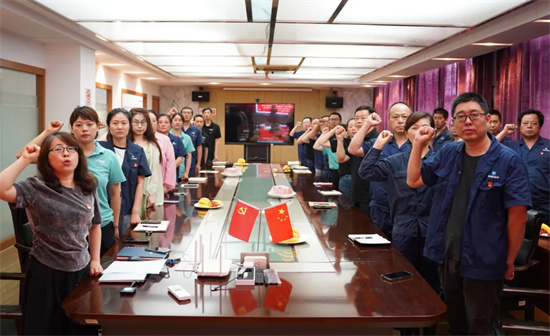 首先,在黨委副書(shū)記汪松濤的帶領(lǐng)下,重溫了入黨誓詞黨員同志們舉起右拳,面向黨旗莊嚴(yán)宣誓,一字一句,鏗鏘有力,黨員同志再一次接受了洗禮,用錚錚誓言續(xù)紅色基因、不忘初心使命。